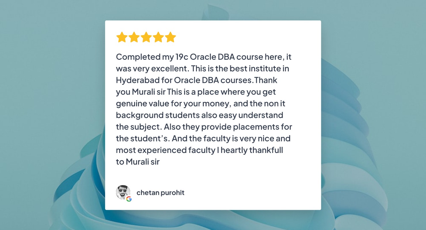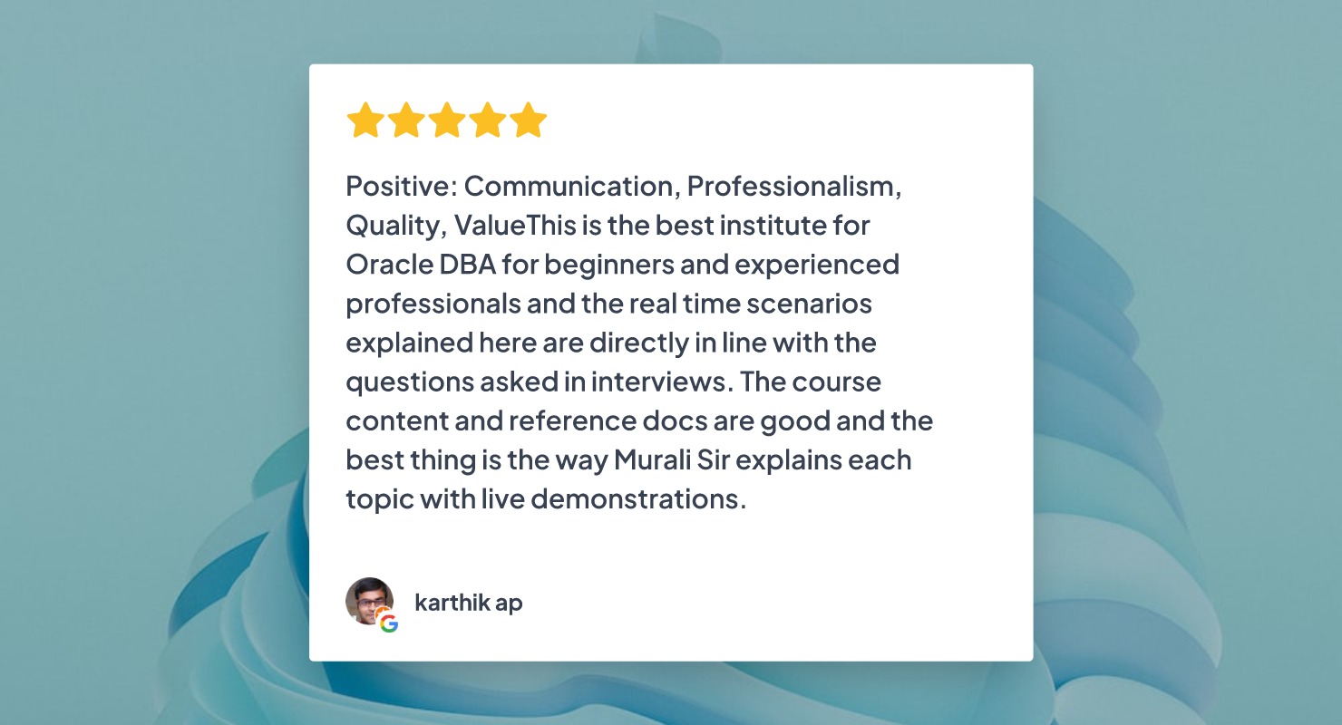 Murali is a certified IT Professional with 27 years of Global IT experience on Oracle Database and Cloud Technologies. Murali's core skills include - Oracle DBA, Oracle RAC, Performance Tuning, Oracle Exadata, Oracle Cloud and AWS Cloud. Throughout his career Murali worked with various global IT companies in India, USA, UK, Singapore and Hong Kong. Murali also worked with Oracle India as a Practice Manager.